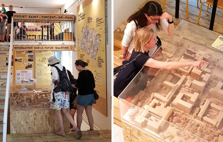Cette fibre conviviale est entretenue depuis 2015 déjà sur le site par l’occupation provisoire des Grands Voisins. Ce groupement d’associations et collectifs créatifs et solidaires a imprimé sa marque dans l’enceinte de l’ancien hôpital. Là est l’autre grande caractéristique du projet : il fait suite à une expérience sociale originale qui a connu un grand succès à Paris et a offert sa notoriété au lieu. La mission de communication du projet urbain confiée à AVDLV se confronte donc à la fois à la chance d’une dynamique positive qui a imprégné et popularisé l’endroit et à la nécessité de « passer à autre chose ». Le quartier Saint-Vincent-de-Paul qui doit se substituer progressivement aux activités des Grands Voisins prolonge d’une certaine manière cet épisode de préfiguration qui perdure encore jusqu’en 2020 et trace aussi d’autres perspectives de l’urbanisme parisien. AVDLV a donc développé et mis en œuvre une stratégie de communication qui cohabite et collabore avec les Grands Voisins tout en exprimant la spécificité du projet d’aménagement et le rôle de l’aménageur, PMA.