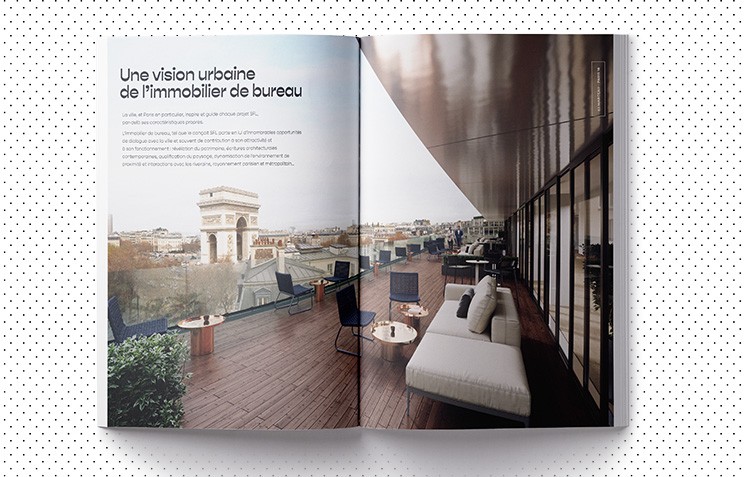 SFL gère et fait croître un patrimoine tertiaire exceptionnel, largement situé dans le quartier central des affaires parisien. La direction du développement a souhaité en constituer un panorama complet qui rapproche des actifs dont l’identité et la notoriété particulières ont souvent primé sur une communication d’ensemble. Pour ce support destiné aussi bien aux pouvoirs publics qu’aux prospects du groupe, AVDLV a proposé de faire ressortir les dimensions et les valeurs communes de l’approche de SFL plutôt que d’additionner des descriptions monographiques. Les projets viennent ainsi illustrer naturellement les points forts du groupe : préoccupation urbaine, réinterprétation radicale du patrimoine, co-construction du projet… S’agissant de cette dernière caractéristique l’ouvrage souligne constamment l’apport du client autant que de la foncière dans le résultat final. D’où le titre : Un peu de nous, beaucoup de vous.